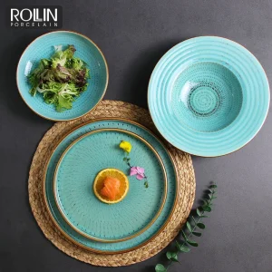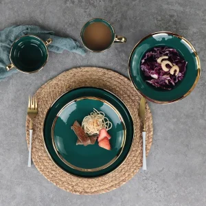 Кухонная посуда, керамическая тарелка, ресторанная фарфоровая круглая тарелка, зеленые керамические тарелки, наборы столовой посуды, посуда