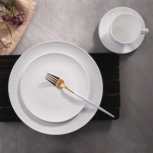 Легкий роскошный современный гостиничный набор столовой посуды из костяного фарфора, белый набор фарфоровой посуды для авиакомпаний, индивидуальный новый обеденный набор из тонкого фарфора