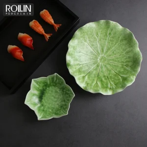 Оптовая продажа соуса зеленого цвета тарелка для соуса фарфоровая тарелка в форме листа лотоса тарелки японский обеденный набор