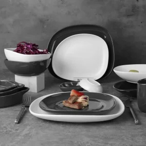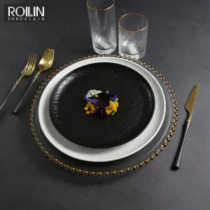 Оптовая продажа фарфоровой тарелки, роскошный обеденный сервиз, посуда для ресторана, черно-белая посуда, тарелки, посуда по индивидуальному заказу, поставщик отелей