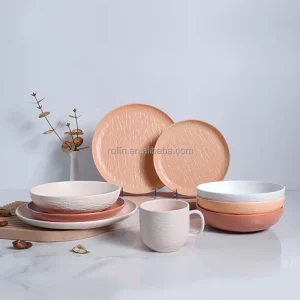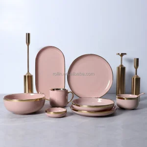 Оптовая продажа керамические розовые тарелки, обеденные тарелки, фарфоровый керамический набор посуды, тарелки для ресторана, общественного питания