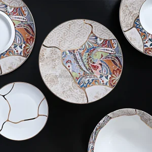 Оптовая продажа керамического фарфорового набора для ресторана, кухонной тарелки, полной роскошной свадебной посуды, набора посуды