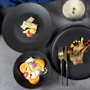 Принадлежности для ресторана Черная фарфоровая тарелка Набор черных фарфоровых тарелок Посуда Фарфоровый набор столовых тарелок для стейка Керамическая посуда