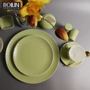 Привлекательная цена, новый тип столовой посуды для отелей, зеленая глазурованная столовая посуда, набор столовых приборов из костяного фарфора