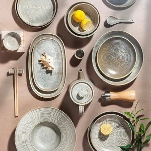 Производитель керамики Chaozhou, посуда для ресторана, керамический светло-голубой обеденный сервиз в японском стиле для ресторана