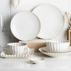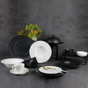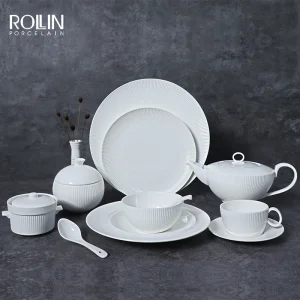 Роскошная посуда и гостиничный дизайн Необычная столовая посуда Полный набор Белая фарфоровая посуда для отелей Оптовая продажа Кухонные принадлежности Обеденный набор