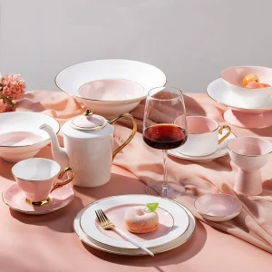 Розовый и белый с золотой оправой Керамическая тарелка в английском стиле Декоративная посуда Набор посуды Декоративная тарелка оптом