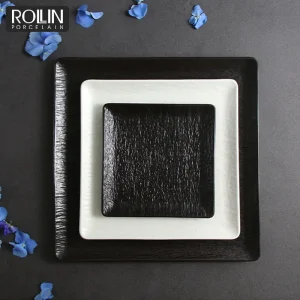 Черные зарядные тарелки Квадратная черно-белая тарелка Китайская керамическая тарелка Набор тарелок для посудомоечной машины Посуда для отеля