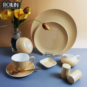 Элегантная боковая тарелка для отеля, обеденная тарелка, цветная глазурованная посуда, обеденный набор из костяного фарфора