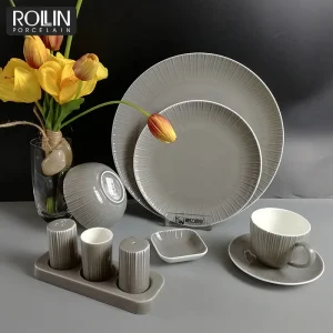 Элегантная обеденная тарелка для отеля, костяной фарфор, серая глазурованная посуда