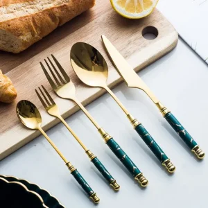 Роскошный набор столовых приборов из нержавеющей стали из 6 предметов с черно-белой и зеленой мраморной ручкой Идеальный набор кухонных столовых приборов