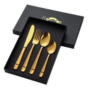 Столовые приборы, 24 шт., позолоченный блок, высококачественный нож, вилка, ложка из нержавеющей стали, набор со стильной подарочной коробкой для вечеринок
