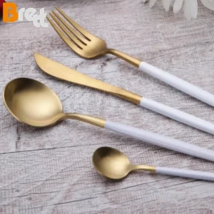 Свадебный столовый прибор, ужин, вилка, нож, ложка, золото, серебро, столовые приборы с белой ручкой