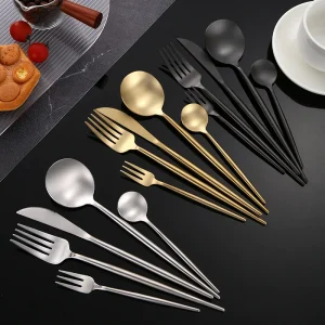 Узкие столовые ножи, вилка и ложка, столовые приборы для отелей и ресторанов
