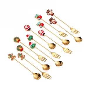 Christmas Cartoon 304 Stainless Steel 4pcs Set Eco-Friendly Gold Silver Fork Spoon for Coffee & Fruit for Giveaways