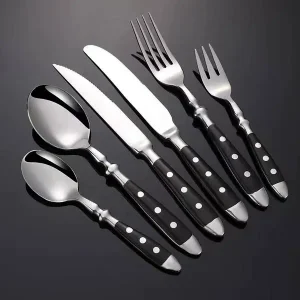 European Design Flatware Set Bakelite Wooden Handle Stainless Steel Knife Fork Spoon for Parties Modern Style Sustainable