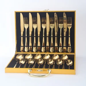 Luxury 24pcs Gold Plated Stainless Steel Cutlery Set Knife Fork Spoon Flatware for Wedding Coffee & Tea With Gift Box