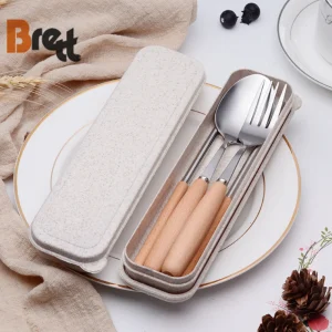 Детская посуда, портативная, 3 шт., столовые приборы из нержавеющей стали с деревянной ручкой, детский набор столовых приборов, ложка для супа, вилка, палочки для еды