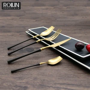 Горячая продажа столовых приборов черного и золотого цвета для отелей и ресторанов