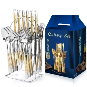 Кухонная утварь в форме золотого яйца, ложка и нож, 24 набора, вилка из нержавеющей стали, набор ложек, ножей, роскошный дизайн, столовые приборы для бистро, кондитерских изделий