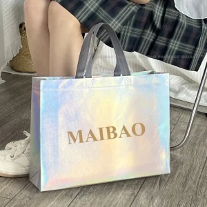 Устойчивая переработанная лазерная блестящая глянцевая металлическая фольга, нетканая сумка для покупок, многоразовая сумка для покупок, нетканая сумка для магазина Rpet
