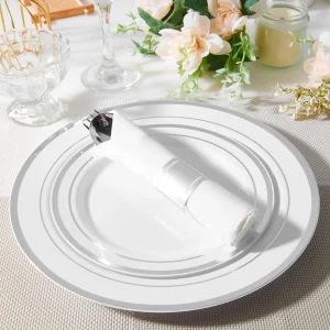 Белая одноразовая тарелка с серебряным краем, банкетная посуда для западного стейка для трансграничных мероприятий