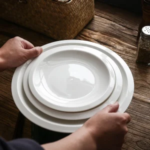 Роскошная белая фарфоровая тарелка с рифленым краем, декоративная посуда для свадьбы и сервировки в отеле