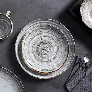 Серые ресторанные тарелки Michell, фарфоровый набор обеденных тарелок, европейская посуда, ленты, тарелки, керамические тарелки для ресторанов, посуда