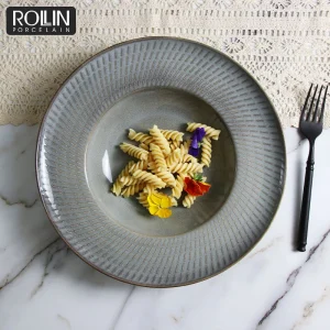 Серые фарфоровые суповые тарелки для печи, тарелки для макаронных изделий для отелей и ресторанов