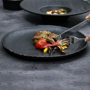 Тарелки Керамический сервиз Круглые черные керамические тарелки Посуда Тарелки Фарфоровая китайская посуда Ужин Посуда Наборы посуды