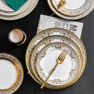 High-End Gold Applique Bone China Porcelain Dinnerware Sets Exquisite Ceramic Tableware for Parties Sustainable High Quality