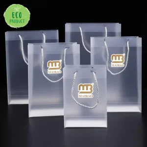 Изготовленная на заказ матовая прозрачная пластиковая сумка для покупок с ручкой, биоразлагаемая прозрачная пластиковая сумка-тоут, подарочная сумка для переноски с логотипом