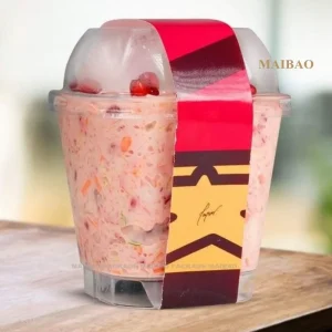 Новый дизайн, розовая пластиковая вставка в стаканчик, упаковочная коробка, одноразовые пластиковые стаканчики на заказ для йогурта, мороженого, уникальные пластиковые стаканчики для йогурта