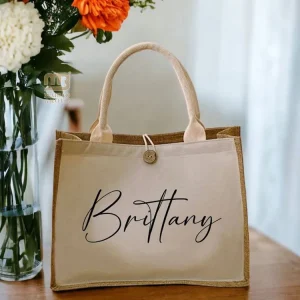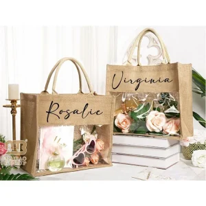 Оптовая продажа, подарок подружке невесты из мешковины, нетканая большая сумка с принтом, уникальная сумка для покупок, подарочная сумка для пляжной вечеринки с окном, джутовая сумка на заказ