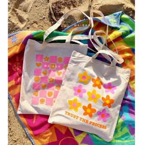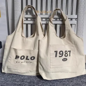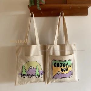 Персонализированная модная перерабатываемая экологически чистая сумка для покупок из необработанного хлопка с боковой стороны плеча Хлопковая сумка-тоут с веревочной ручкой