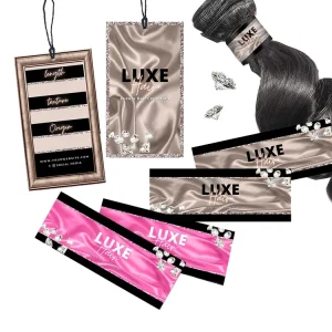 Роскошный логотип длиной в дюйм, галстук для ухода за салоном, наклейки для парика, наборы этикеток, клейкие обертки для наращивания волос и бирки для подвешивания