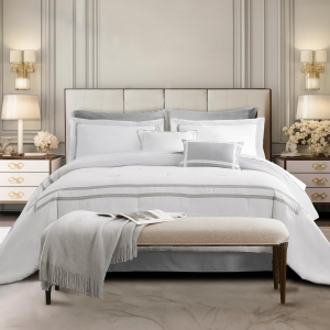 Μοντέρνο, ελαφρύ πολυτελές σετ κρεβατιού 8 τεμαχίων Hydro-brushed White σεντόνι για μαξιλαροθήκη ξενοδοχείου Παπλωματοθήκη Παπλωματοθήκη
