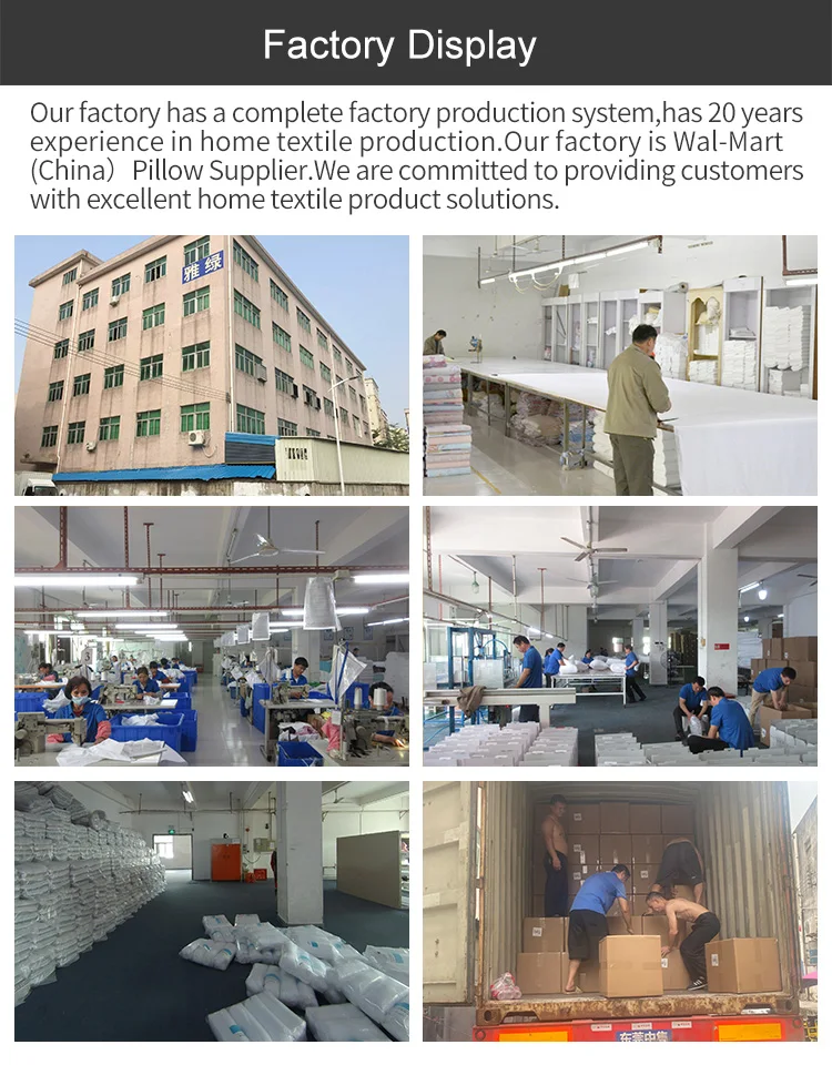 Our company is 22 years old and has been the pillow manufacturer of Walmart China. Our company is a home textile manufacturer integrating production, sales and service.