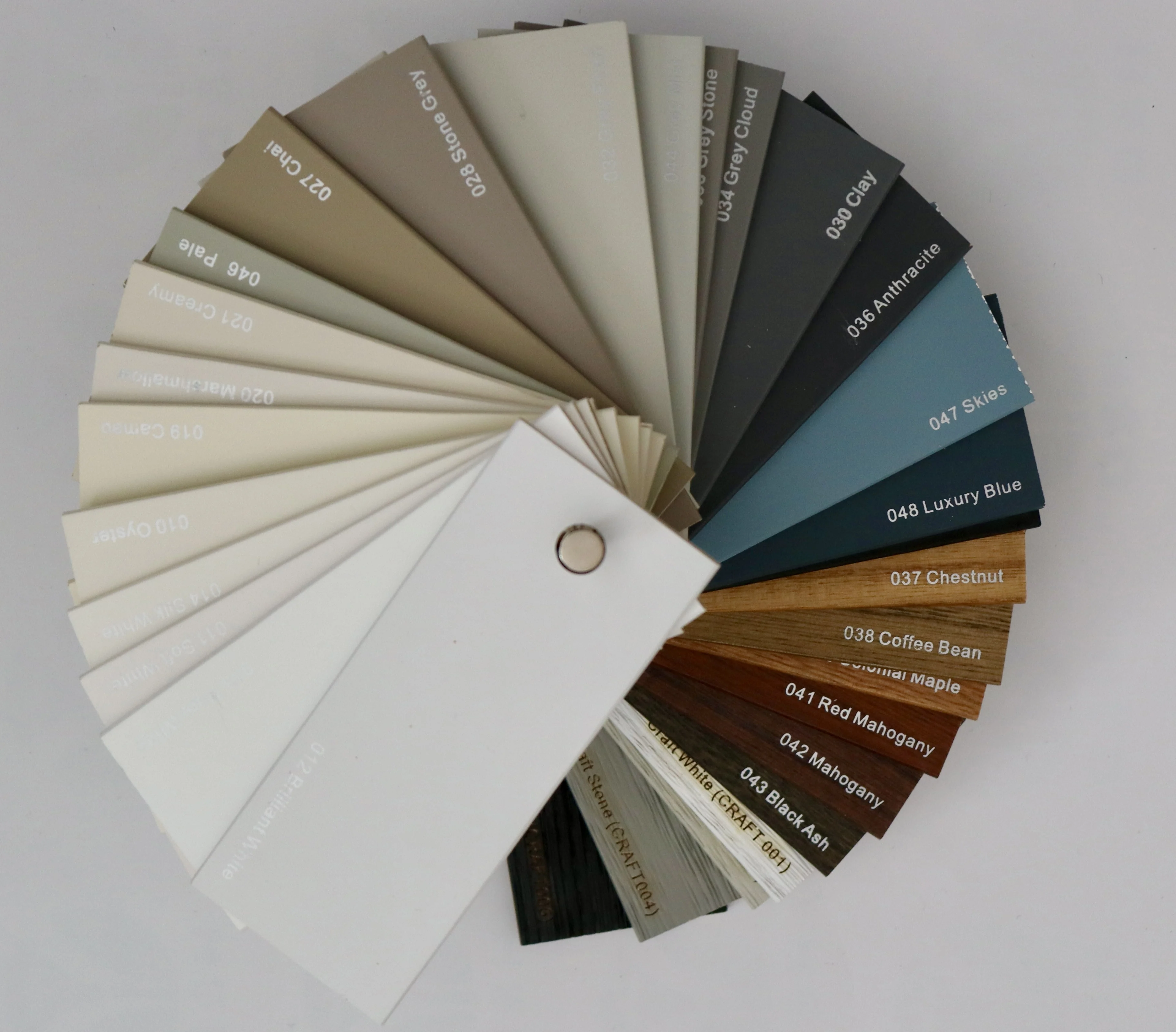 Our shutters are available in a wide range of paint and stained or crafted grained finishes, from traditional white to modern black. You can select any colors from our colors swatches, or we can do custom colors options to finish your shutters in any colors of your choice.