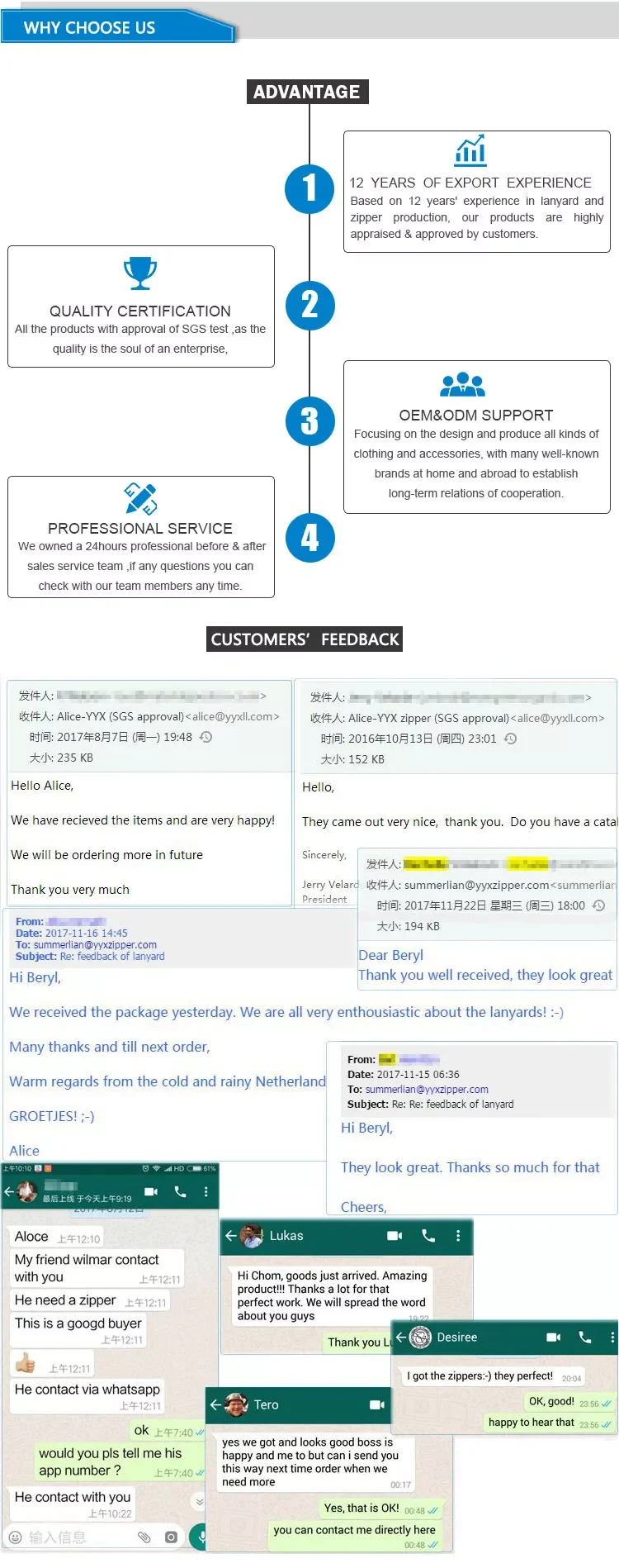 A: We are very confident in our products, every pcs of lanyards were tested ok here,and we pack them very well, so usually you will receive your order in good condition. But to avoid any subsequent trouble regarding quality issue, we suggest that you check the zippers once you receive them,and let us know the details if there is any damaged ones, so that we can deal with it accordingly.