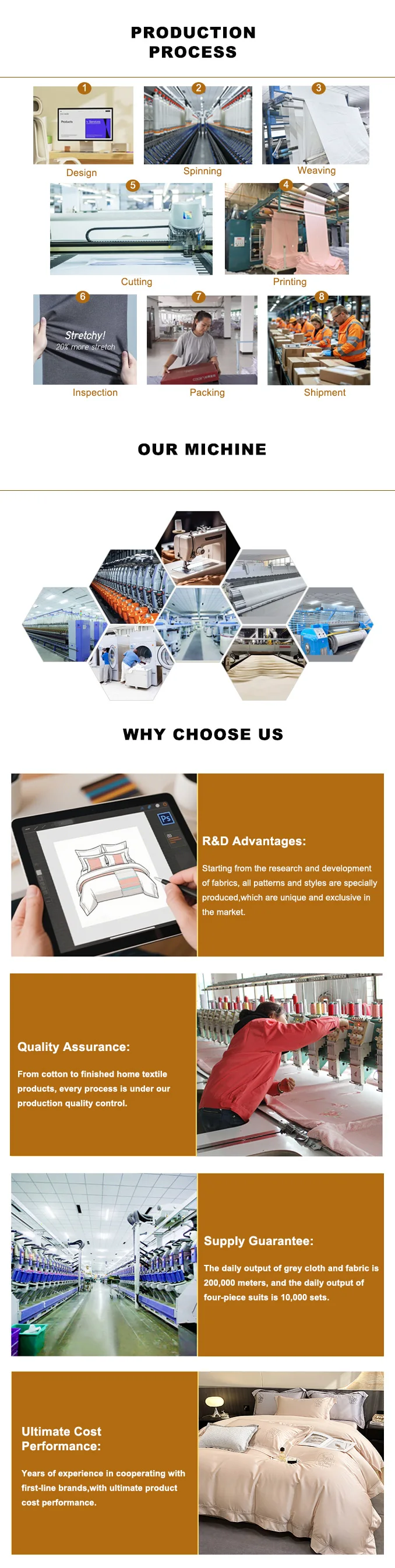 3.Why should you buy from us instead of other suppliers? A: 1. Hebei Tanglong Textile Group is a powerful factory integrating supply and manufacturing. 2. We have over 40 years of experience in home textiles. 3. We have a professional design team with over 20 years of experience at your service.