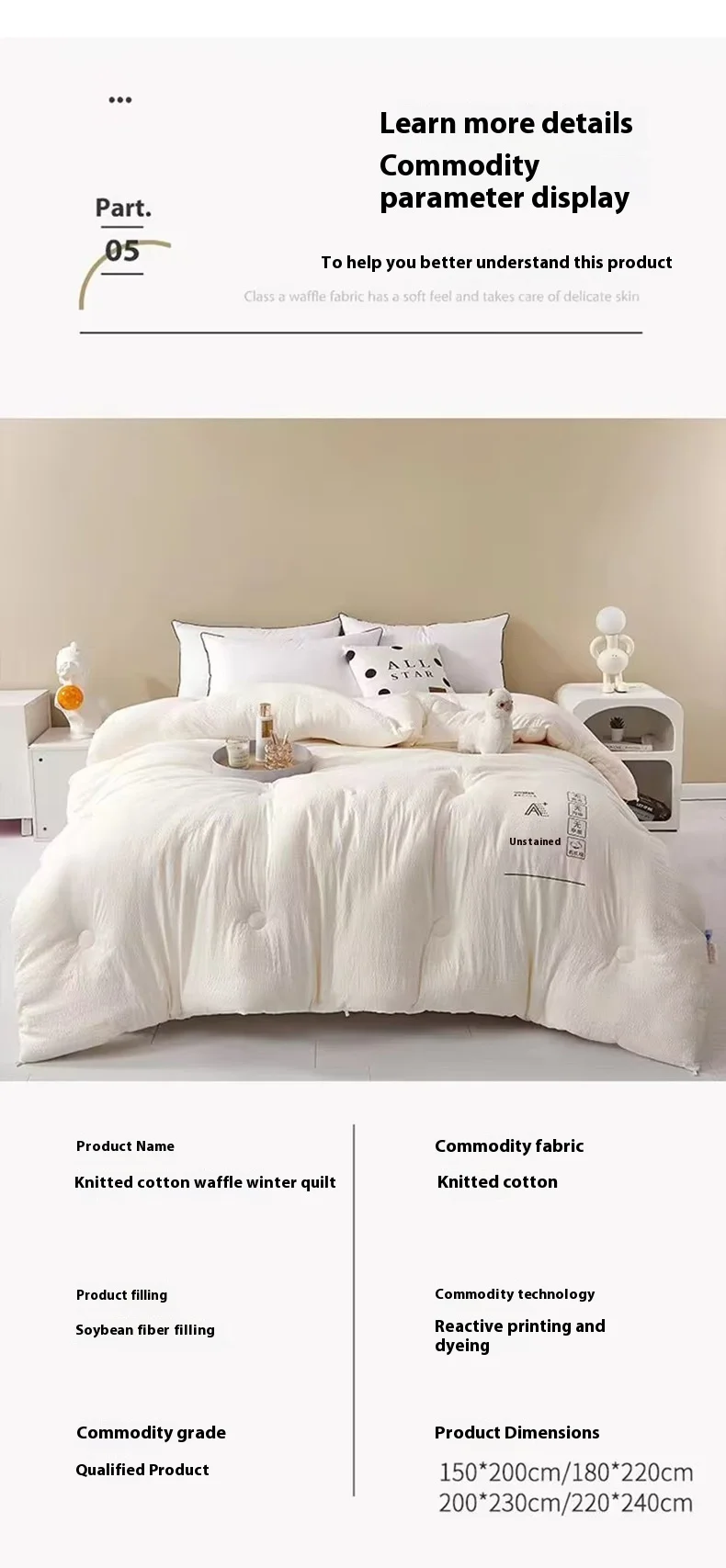 On the issue of size and weight: because there is a trimming process in the production process, the technical methods of each workshop master are different, and the material consumption is also different, so the quilt will have a size error of 0.1kg and a size error of about 1-2%, which is purely within the normal range. the whole process of product filling will basically not affect the thickness, warmth and use of the product. please take care if you mind. The weight is the gross weight including the package