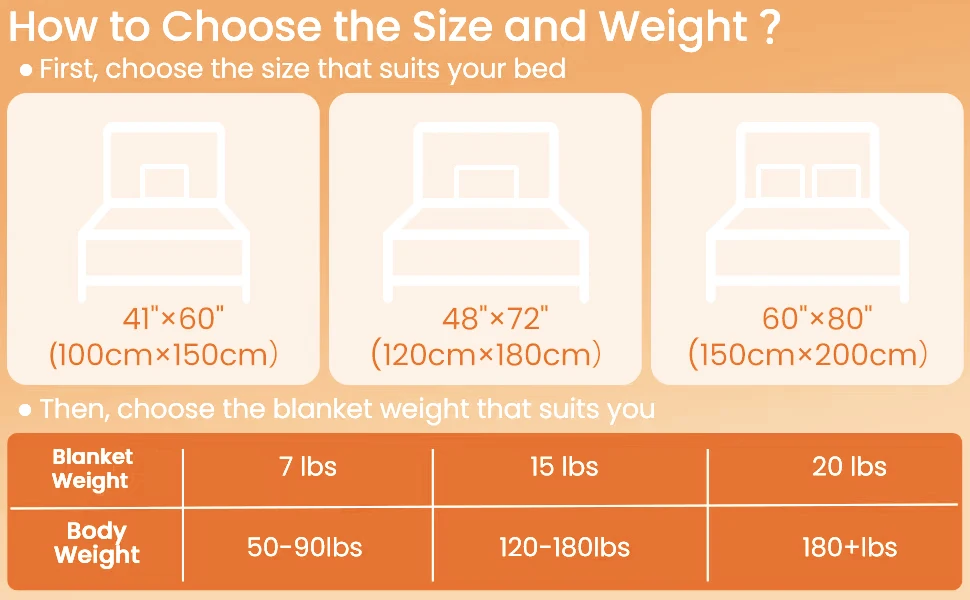 | Suitable weight | Weighted blanket is 10-12% body weight. Popular weight: 5lbs(3kg) 7lbs(4kg) 10lbs(5kg) 15lbs(7kg) 20lbs(9kg) 25lbs(11kg) | |||