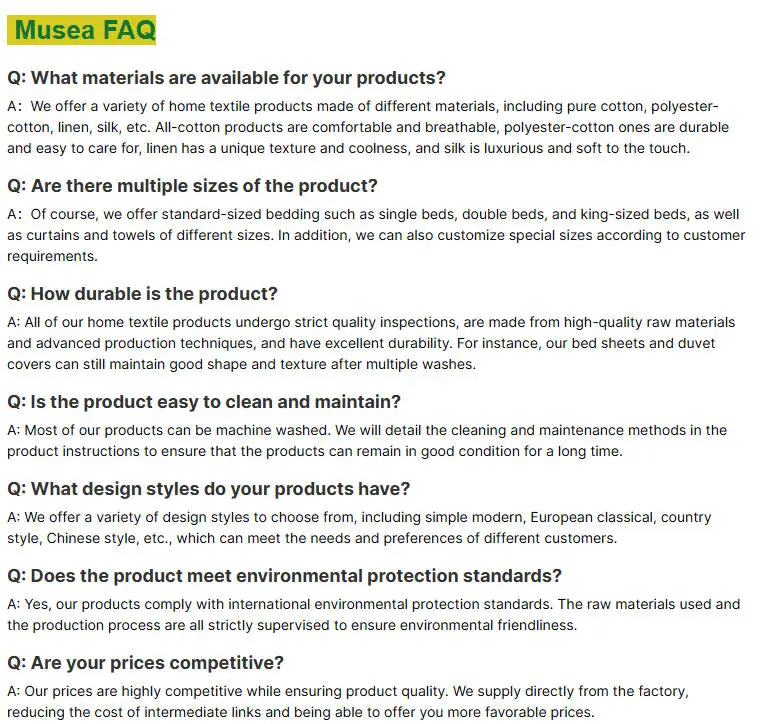 Our factory is a key asset,equipped with state-of-the-art machinery and technology. It covers a vast area and has a highly skilled workforce. We have the capacity to produce a wide range of home textiles,including bed linens,blanket,curtains,table cloths,and so on.