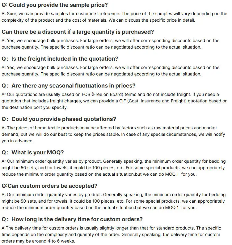 We pride ourselves on our ability to adapt to customer needs and market trends. Whether it’s a small-batch custom order or a large-scale production run,we are committed to delivering excellence. Our goal is to build long-term partnerships with our clients,providing them with high-quality home textile products and outstanding service.