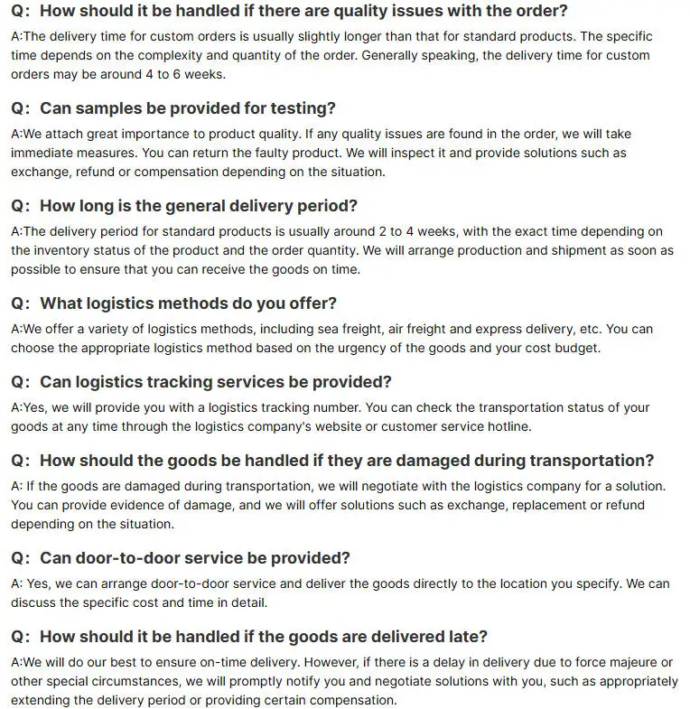 In addition to our strong production capabilities,we excel in order fulfillment. Our team of experienced professionals is adept at managing complex orders. We offer a full-service solution,from sourcing raw materials to final packaging.Our logistics and warehousing facilities are top-notch,enabling us to deliver products to customers around the world in a timely and cost-effective manner.
